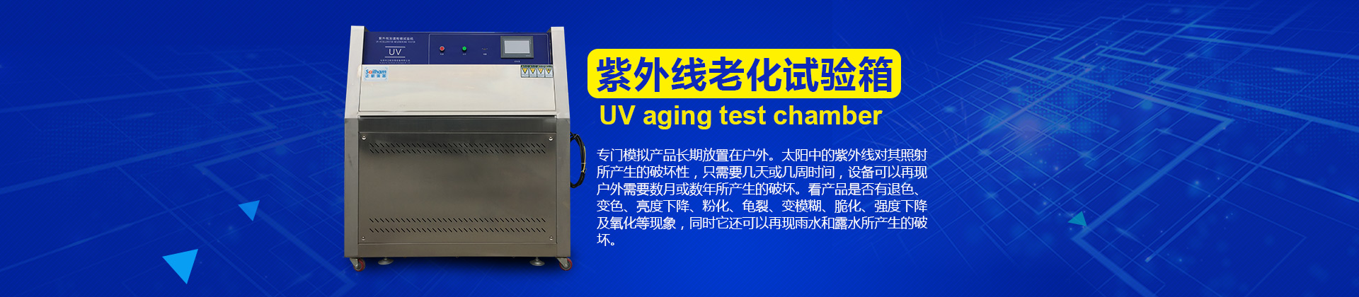紫外老化試驗(yàn)機(jī)是模擬大自然的一些光照,溫度、濕度等等條件對物體進(jìn)行老化的處理。并且進(jìn)行觀察,所以他的用途還是比較廣泛的。 紫外老化試驗(yàn)機(jī)可以再現(xiàn)陽光,雨水和露水所生產(chǎn)的破壞。紫外光老化試驗(yàn)箱通過將待測材料曝曬放在經(jīng)過控制的陽光和濕...